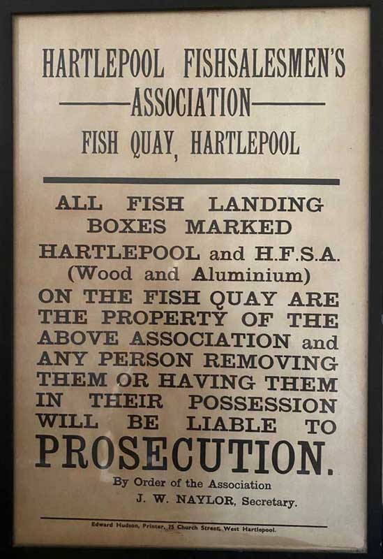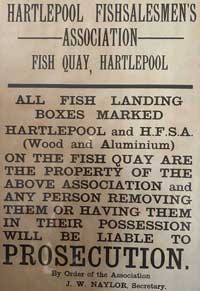 This poster about the Hartlepool Fishsalesmen's Association goes back some years. Image supplied by Robert Dawes and used with thanks.